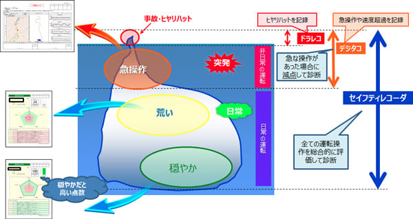 事故やヒヤリハットのような非日常の運転だけでなく、日常の運転に特化して点数化することで、ドライバー自身も気づかない運転の「クセ」を見える化できるようになる。
