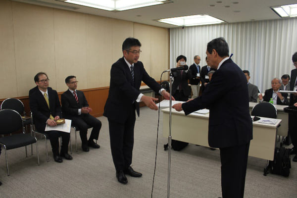 表彰式では、日本水先人会連合会会長から同社加藤雅徳常務執行役員に賞状と楯が贈呈された。