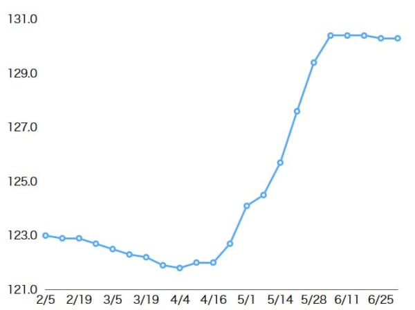 | 新潟 | 131.2 | 130.6 | 0.5% |