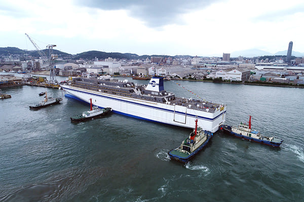 荷主三菱重工業は5日、同社グループの三菱造船が太平洋フェリー向けに建造中の大型フェリーの命名・進水式を行ったと発表した。