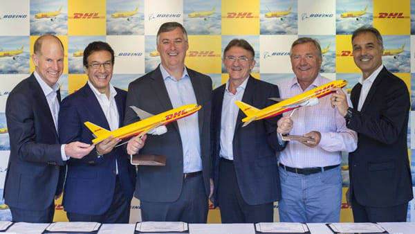 ▲f.l.t.r.: Kevin McAllister CEO Boeing Commercial Airplanes, Ihssane Mounir, VP Sales & Marketing The Boeing Company, Dan Abraham, VP Sales Europe Boeing Commercial Airplanes, Ken Allen, CEO DHL Express, Charlie Dobbie, COO DHL Express, Mike Parra, CEO DHL Express Americas