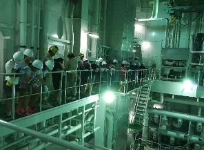 当日は、名村造船所内を見学し、船が完成するまでの工程の説明を受けながら、バスから建造中の巨大な船体ブロックやプロペラを見て回った。その後、全長339メートル、幅60メートルの巨大な同船に乗り込み、船長・両一等航海士の案内の下船内を見学した。