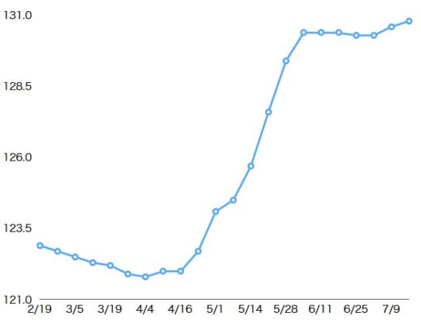 | 地域 | 7月17日(単位:円) | 7月9日(単位:円) | 上昇率 |