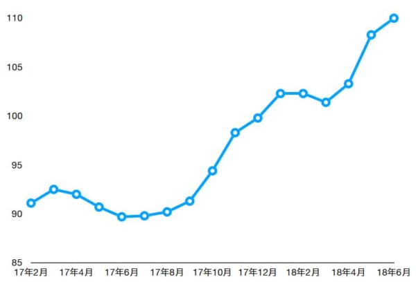 調査・データ資源エネルギー庁が7月31日公表した軽油のインタンク納入価格調査結果によると、6月の全国平均納入価格は110円で前月から1.7円値上がりした。