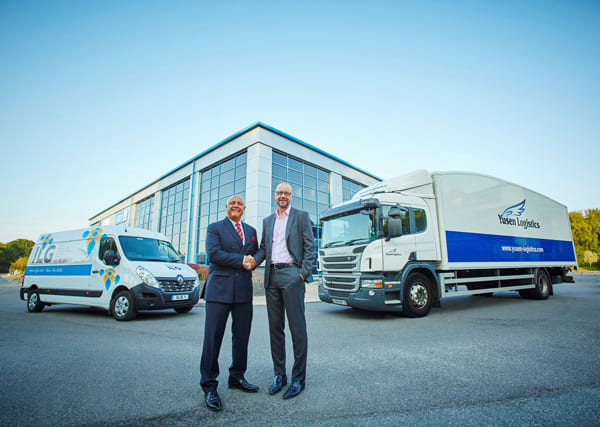 ▲(左から)インターナショナルロジスティクスグループのマイク・スティーブンソンマネージングディレクター、ユウセンロジスティクス(UK)のアンディ・フィットマネージングディレクター