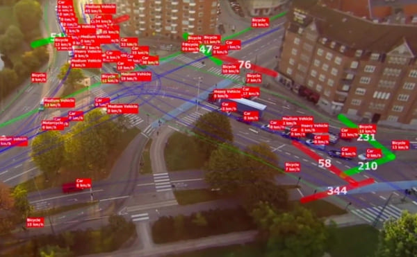 テラドローンが開発したシステムは、車や人の速度、走行軌道、車種ごとの交通量算出など幅広いデータを取得。これまで交通量調査にかかっていた人件費を大幅に削減することが可能になる。