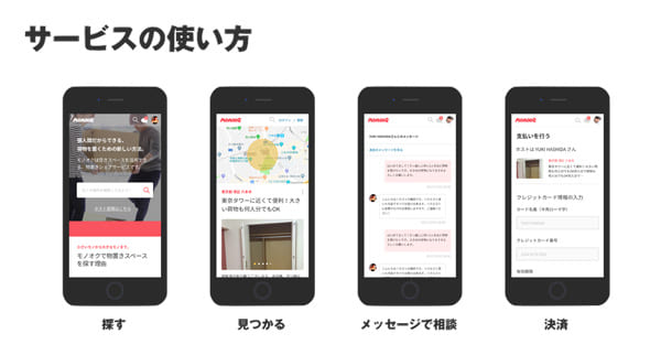 新機能は、利用者が希望するエリアと条件が合うホストをモノオクが探し出し、そこに荷物を保管するサービスで、所定のフォームに情報を入力することで運営側から通知が届き、指定の場所ですぐに利用者の荷物を受け取る流れ。その後、利用者が希望するエリアと条件が合うホストが見つかり次第、その場所に荷物を届ける。