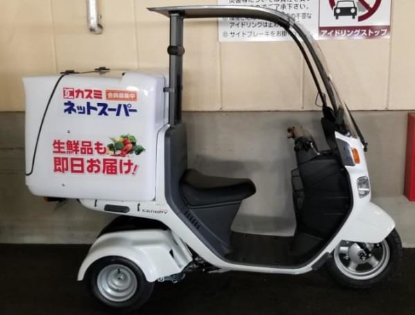 フードカスミ(茨城県つくば市)は10日11時から「フードスクエアカスミ流山おおたかの森店」(千葉県流山市)で、ネットスーパーの新サービスとしてバイクを利用した自社配送便「お買い物代行サービス」を開始した。