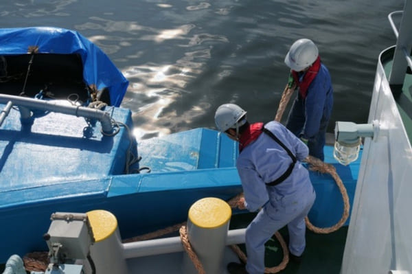 インターンシップに参加したのは、山口県立大津緑洋高校海洋技術科の生徒2人と島根県立浜田水産高校専攻科の生徒1人の計3人。それぞれ7月9日、30日から5日間、タグボート船内に寝泊まりしながら、船員の仕事を体験した。