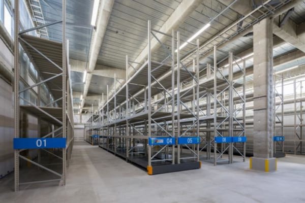 新倉庫の延床面積は3000平方メートルで、これまで外部倉庫で管理していた資材や工場の各棟内にあった資材などを集約し、ロケーション管理システムを導入することで、資材ピッキング時の作業の効率化を図る。