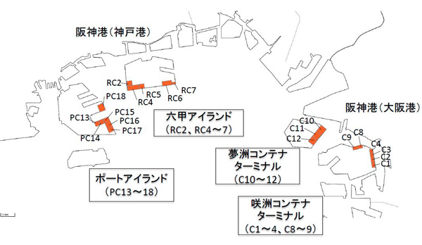 | RC7 | 年内の本格供用を予定。なお、仮復旧中は、同ターミナルの利用船会社は神戸港内の他ターミナルを暫定利用することで調整中。 | ・電気系統・荷役機械などの復旧後。 | |