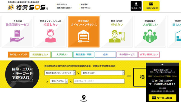 同サイトでは物流課題を抱える事業者が、物流SOS内で必要な物流事業者を、無料で探すことができる。業者検索は業務別のカテゴリ検索のほか、都道府県別検索やキーワード検索など多様な方法で目的の事業者を見つけ出すことが可能となっている。
