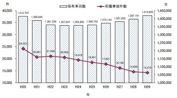 ▲保有車両数と死傷事故件数の推移(出所:全日本トラック協会)