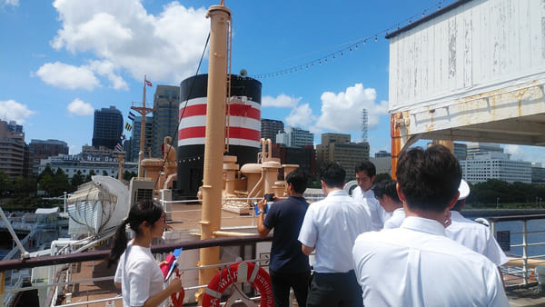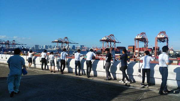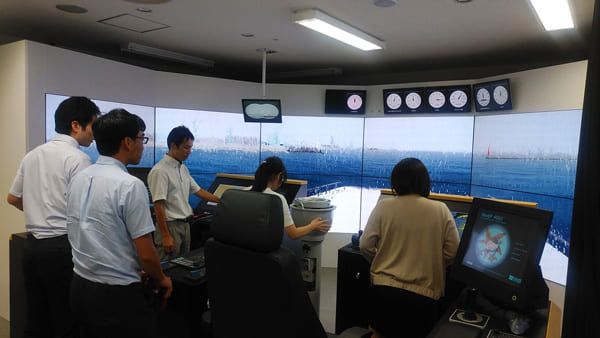 研修では同社の事業紹介や、取り組む環境課題についての解説を行ったほか、日本海洋科学での大型操船シミュレーター体験、日本郵船氷川丸・歴史博物館の訪問、大井コンテナターミナル見学を実施した。