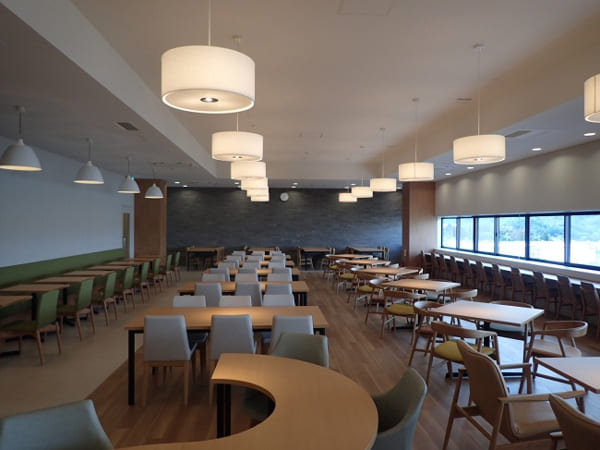 施設で働く従業員に快適な環境を提供するため、倉庫内には一部空調、大風量低回転速度ファンを設置。施設内には無人売店や厨房付きカフェテリアや仮眠室を完備している。また施設内に保育所を設けることで、従業員の仕事と育児の両立を支える。