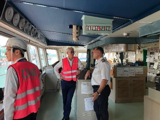 9月13日にMOLクリエーション(8100TEU型)、同月17日にNYKイーグル(1万4000TEU型)を訪問し、「本船の乗組員は、貨物の安全輸送と環境保全の鍵を握る存在だ」と話した。