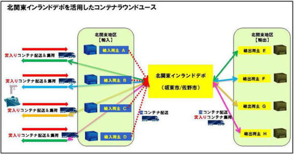 コンテナラウンドユースに関する企画、開発、設計、販売、運用業務の協業、北関東エリアを中心に北関東インランドデポ(坂東・佐野)を経由した京浜港、常陸那珂港との配送スキームの構築、北関東インランドデポからの船荷証券(B/L)発行によるデポから海外の仕向地までの一貫輸送サービスの構築――などを目的に業務提携した。