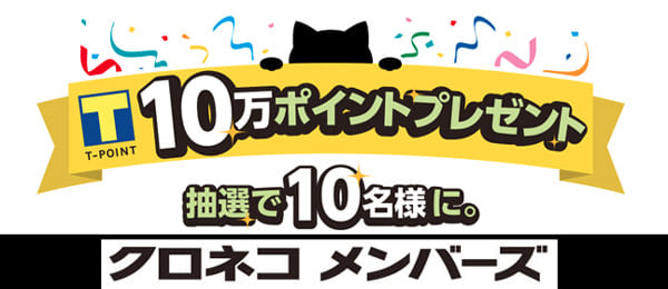 キャンペーンは、期間中、クロネコメンバーズに新規登録することで、通常もらえる50ポイント付加に加え、新規登録者の中から抽選でTポイント10万ポイントを10人にプレゼントするもの。