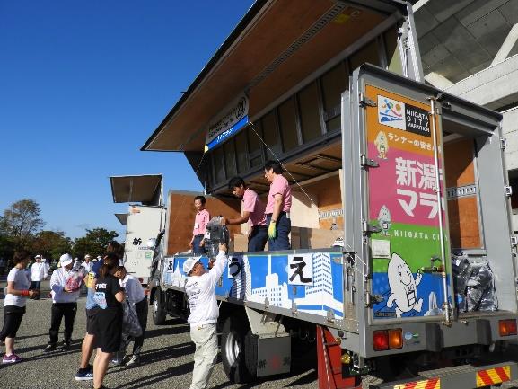 イベント新潟運輸(新潟市中央区)は、8日に開催された「新潟開港150周年記念 第36回新潟シティマラソン2018」で、参加者の手荷物預かり業務を受託し、スタート地点のデンカビッグスワンスタジアムから、ゴール地点の新潟市陸上競技場まで手荷物輸送を実施した。