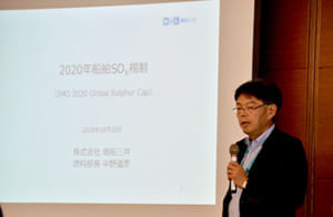 「海運に関わる環境規制と当社対応について-SOx規制を中心として-」と題した今回のミーティングでは、今後海運業界に導入されるさまざまな環境規制の説明に加え、特に2020年1月からの導入が決定しているSOx規制の概要とその影響、同社の対応方針を詳細に説明し、機関投資家を中心に70人が参加した。