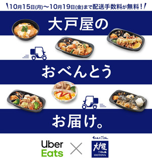 大戸屋では、東京都、神奈川県、埼玉県、京都府、大阪府、兵庫県で実店舗と同じラインナップを揃えたウーバーイーツの弁当配達を提供している。