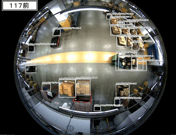 ▲倉庫内の360度カメラをAIが分析した結果
