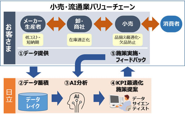 サービス・商品日立製作所は16日、小売・流通業顧客から各種データを預かり、データ蓄積からAIでの分析、バリューチェーンの最適化に向けた施策提案までを一括して行う「Hitachi Digital Solution for Retail」(ヒタチ・デジタル・ソリューション・フォー・リテール)を11月1日から提供開始すると発表した。