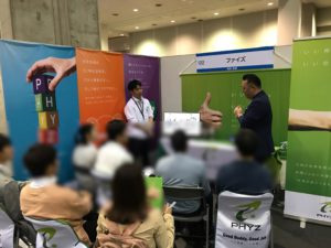 同社のキャッチコピー「good buddy, good job いい仲間。いい仕事。」をテーマに、ブースでは採用担当者のほか榎屋幸生社長も加わり、訪れた学生たちに会社説明を行った。