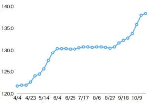 | 福岡 | 135.3 | 134.0 | 1.0% |
