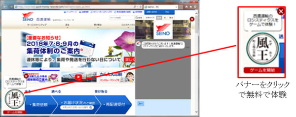 ロジスティクス西濃運輸は26日、自社のホームページのトップページに、ゲーム形式で物流課題の解決を提案する「風王」(かぜおう)を公開した。