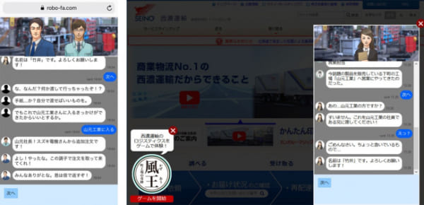 仕組みは無料で遊べるシリアスアドベンチャーゲームのシナリオを通じて、商品の保管や配送、輸出入などの物流課題の解決を提案する同社ロジスティクスサービスサイトでの解決知識の提供やネット上から相談窓口へつながるものとなっている。