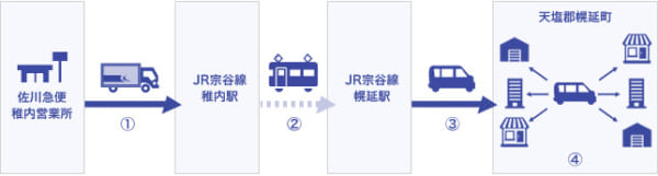 宗谷線稚内駅-幌延駅間で旅客列車に宅配便と旅客を混載して輸送することを検討しており、具体的には、幌延町で1日に配達する荷物を宗谷線の客車内に積み込み、稚内駅から幌延駅まで輸送。幌延町を担当する佐川ドライバーが駅で配達荷物を受け取り、配達する流れを想定している。