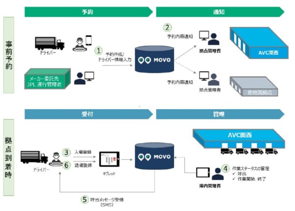 AVC関西はことし2月に本稼働を開始した後、数多くの納品事業者からの納品作業を円滑化して現場の負担を軽減する取り組みを進めるため、他社のバース予約システムを導入するなどしてきたが、「今後さらに増加していく物量」にも対応できるよう、機能の多様性や運用上の柔軟性を評価し、バースの予約、受付、ドライバー誘導といった業務をデジタル化するクラウド型ソリューションのムーボバース管理ソリューションを導入することにした。