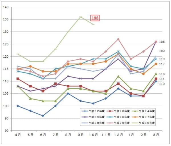 11月の成約運賃指数、前年比9P増加 18/12/04