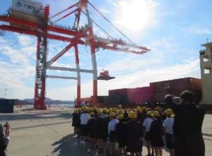 下関造船所では、建造中の全長200メートルのフェリーや溶接作業を間近に見ることができ、船ができるまでの行程を学んだ。「SEONG HEE」乗船に際しては、日本はさまざまなものを外国との間で輸出入していることや、税関の役割・仕事内容として麻薬犬による取締デモンストレーションが行われたほか、パスポートにまつわる話を聞くことができた。