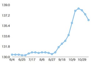 | 東京 | 136.1 | 137.0 | -0.7% |