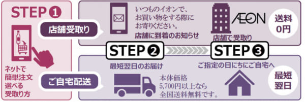 現在400店舗で展開しているが、ワイン専門サイトでも、店舗受取りサービスを拡大する。これにより、購入したワイン、日本酒、ビールなどを自宅配送以外に、本州・四国の「イオン」「イオンスタイル」130店舗で店舗受取りが可能になる。