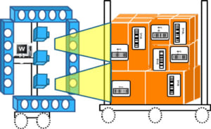 同社はこの技術を活用し、同社グループの物流センターに「映像検品システム」を実装した。同システムでは台車に積まれた複数の検品対象の全体画像からラベル情報を読み取り、さらにこのラベル情報からバーコード部分のみの画像を高精度に読み取ることで、高速・正確な情報処理を実現した。