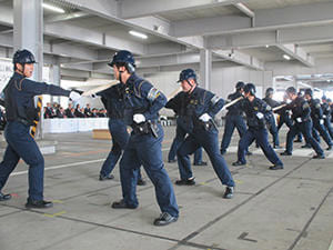 ソフト警戒棒や刺又を使用した実技訓練のほか、合気道・空手道を取り入れた護身術、救急蘇生法の訓練など、警備員として必要な知識・技能の向上に向けた訓練を行った。