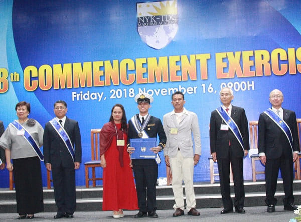 式典には、同国関税局のレイ レオナルド B. ゲレロ局長をはじめ多くの来賓を迎え、日本郵船の内藤忠顕社長、TDGのJ.ロベルトC.デルガド会長らが出席し、2014年に入学した第8期生171人の卒業を祝った。