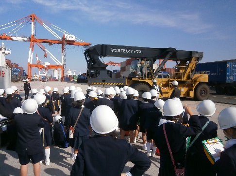ロジスティクスひろしま港湾管理センターは21日、東広島市立小谷小学校5年生を対象に、広島港国際コンテナターミナル見学会を同日実施したと発表した。生徒56人、教員3人の計59人が参加した。
