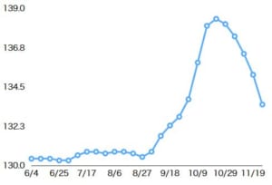 | 地域 | 11月26日(単位:円) | 11月19日(単位:円) | 上昇率 |