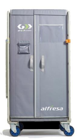 alf-GDP-Containerは、保冷品をアルフレッサの拠点間で輸送する際に使用する専用コンテナ。多くの保冷管理の必要な医薬品の保管温度である2-8度を12時間以上維持する。高性能真空断熱材(VIP)を搭載し、蓄熱シートの搭載により、凍結や2度未満の温度逸脱を防止することができる。