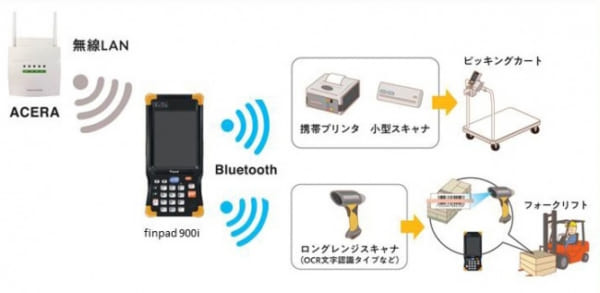 ブルートゥースはバージョン4.2に対応。長距離でバーコードなどを読み取れるロングレンジスキャナや、携帯プリンタといった周辺機器と容易に接続して使用できる。