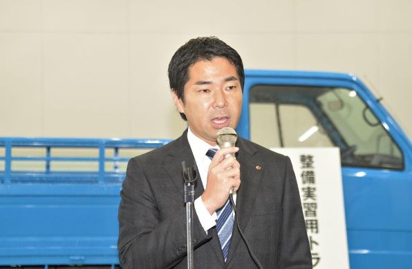 寄贈にあたり、富永副部会長は「生徒の皆さんには、この車両でトラックの構造について学んでもらうとともに、国民生活を支えるトラック輸送についても、ぜひ興味を持ってもらいたい」と挨拶を行った。寄贈を受け、同校の立石校長は「これまで乗用車中心の実習だったが、トラックの構造についても学んでもらう機会をいただき、ありがたい」と謝辞を述べた。