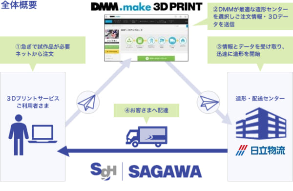 ロジスティクス佐川急便と日立物流は12日、DMM.comが展開する3Dプリントサービス「DMM.make3Dプリントサービス」の物流効率を高める取り組みが今月4日からスタートしたと発表した。