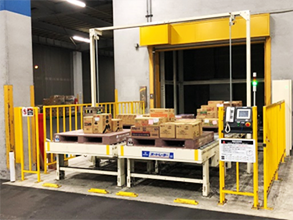 ▲自動フォークリフトと連携するオートレーター