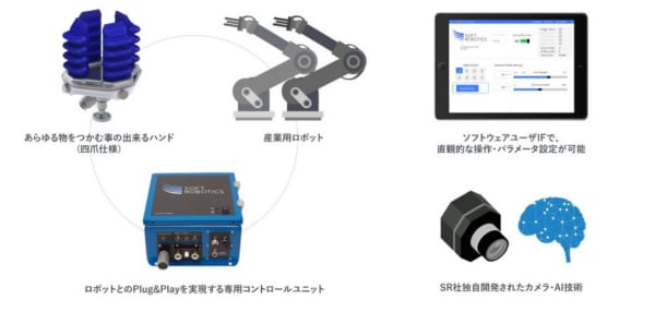 対象物をピックアップするために膨大なデータの事前インプットが必要な従来のロボットに比べ、スーパーピックは「人間がさまざまな物を無意識に掴むことができるように、対象物の重心や素材、大きさを自動で判断・調整し、適切な握力で掴むことができる」。これまでロボットによるオートメーションが困難だとされてきた業界でも利用が可能だという。