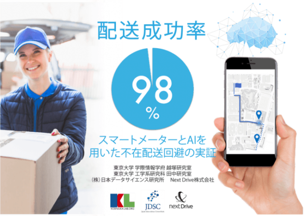 配達成功率が98%という高い割合でAIの有効性を示したこの取り組みは、東大大学院情報学環の越塚登研究室、工学系研究科田中謙司研究室の「不在配送ゼロ化AIプロジェクト」によるもので、東大の研究室が東大発ベンチャーなどの協力を得て「実用化を前提」に実施した。