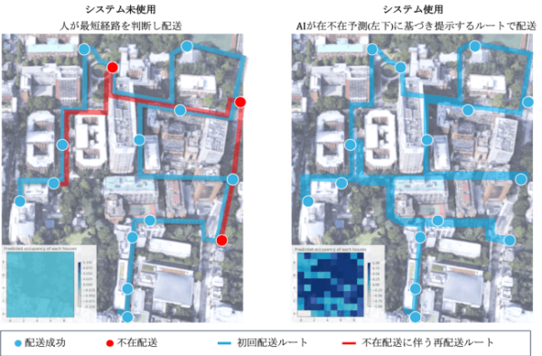 配送試験は9月6日から10月27日まで東大構内で行われ、配送成功率が98%に達したほか、不在配送に伴う再配送が削減することで移動距離も5%短縮できることがわかった。また、これまで特定されていた「不在」というプライバシー情報が配送者に伝わることがなくなり、個人情報保護の強化につながる結果も得られた。